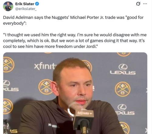 正如阿德爾曼所說,休賽期掘金那筆2換1交易是一筆實打實的雙贏交易,在小波特如今打出傲人表現(xiàn)后,看似籃網成為贏家,掘金是交易輸家,事實卻并非如此。