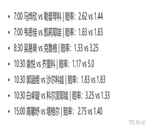 馬燁欣、韋思佳、吳易昺、袁悅、郭涵煜、白卓璇和高馨妤,中國七將將從這一天的北京時(shí)間早上七點(diǎn)開始,一直打下午三點(diǎn)以后,誰能緊隨朱琳腳步晉級令人期待。